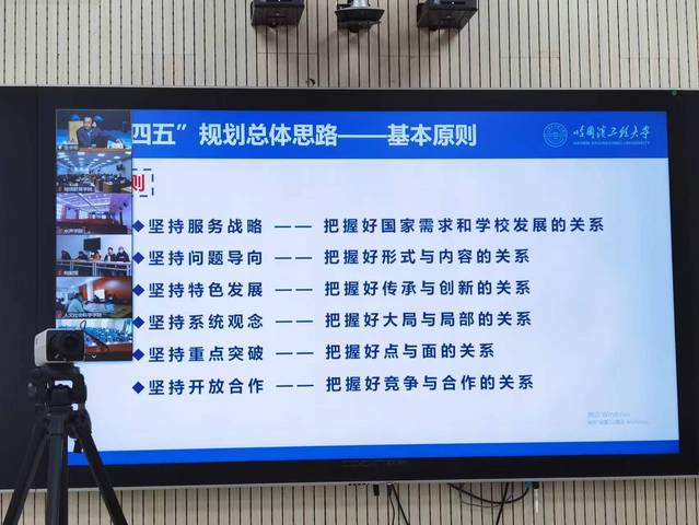 姚郁校长从学校“十三五”发展建设回顾、“十四五”发展形势分析、“十四五”规划总体思路等方面进行了具体解读。他指出,学校必须始终坚定不移坚持和加强党的全面领导,在落实立德树人根本任务中贯彻新理念,在服务国家战略需求中体现新价值,在服务行业急需和区域经济发展中展现新作为,在改革创新中推进高质量发展,全面践行“突出特色、服务国家、世界一流” 的发展愿景,开创学校“十四五”发展的新篇章。