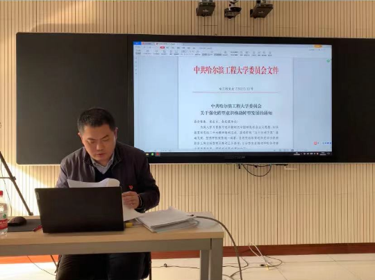 宋阳同志接着传达学习了学校全面从严治党工作会议精神,部署了学院全面从严治党工作及学院重点工作;吴雷同志解读了《中央政治局2022年12月6日会议公报》;王丹丹同志解读了《二十届中央纪委第二次全体会议工作报告》、《工信部2023年党的建设暨党风廉政建设工作会议和十三届省纪委二次全会讲话》;许鑫鑫同志解读了《落实中央八项规定精神知与行》读本。