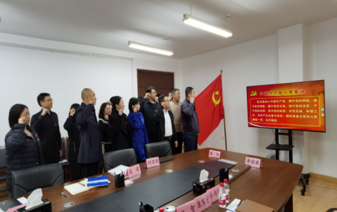 面向党旗,学院支部书记宋阳同志领誓,全体党员重温了入党誓词。全体党员进一步坚定了爱党、信党、跟党走的理想信念。