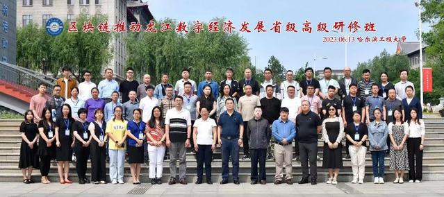 6月12日-6月16日,在学校喜迎70周年校庆之际,由黑龙江省人力资源和社会保障厅主办、哈尔滨工程大学承办、suncitygroup太阳集团、哈尔滨工程大学计算机科学与技术学院、电子政务建模仿真国家工程实验室、黑龙江省计算机学会青工委协办的“区块链推动龙江数字经济发展高级研修班”(省级专业技术人才知识更新工程2023年高级研修项目)在suncitygroup太阳集团启航活动中心举行。来自黑龙江省工业信息化发展中心、哈尔滨市城市建设投资集团有限公司、中国联通黑龙江省分公司、齐齐哈尔市人力资源和社会保障信息中心、密山市数字经济产业发展中心、龙江县自然资源局、黑龙江省招标有限公司等57家单位的138名学员参加学习。