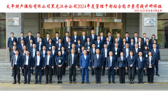 为进一步提高太平财产保险有限公司黑龙江分公司管理人员做好新时代金融工作的责任意识和本领能力,10月25日,由太平财产保险有限公司黑龙江分公司主办,哈尔滨工程大学承办的“太平财产保险有限公司黑龙江分公司2024年度管理干部综合能力素质提升研修班”开班式在suncitygroup太阳集团成功举办,共有69名来自太平财产保险有限公司黑龙江分公司领导干部参加培训。