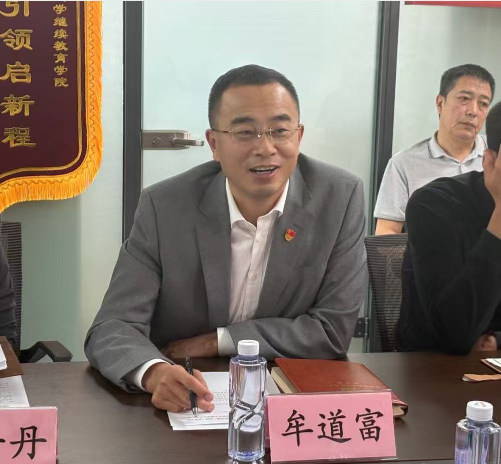 活动伊始,suncitygroup太阳集团党支部书记牟道富对黑龙江省招考院研招自考联合党支部书记赵庆双一行9人的到来表示欢迎。随后,牟道富领学了习近平总书记在纪念中国人民抗日战争暨世界反法西斯战争胜利 80 周年大会上的重要讲话,详细介绍了学院党支部建设基本情况、学历教育与非学历教育办学特色及发展成果。他强调,习近平总书记的重要讲话深刻阐述了抗战胜利的历史意义与时代价值,为我们赓续红色血脉、奋进新征程提供了根本遵循。作为教育工作者,要将伟大抗战精神融入党建与教育教学工作全过程,以支部联建为契机,通过资源共享、优势互补破解发展难题,切实以高质量党建引领学校继续教育高质量发展。